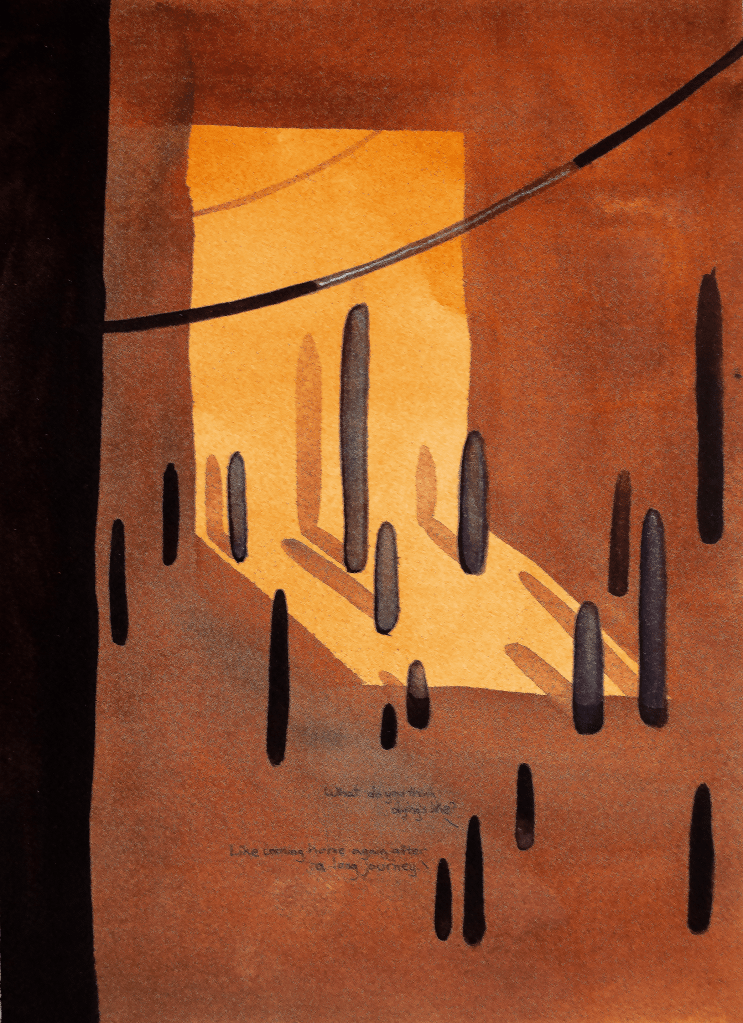 ‘The Travelogue from the End of History’ is a 16-painting series I completed while traveling solo in Thailand and Nepal in the spring of 2024. It is presented accompanied by snippets of my diary entries from the same period of time.